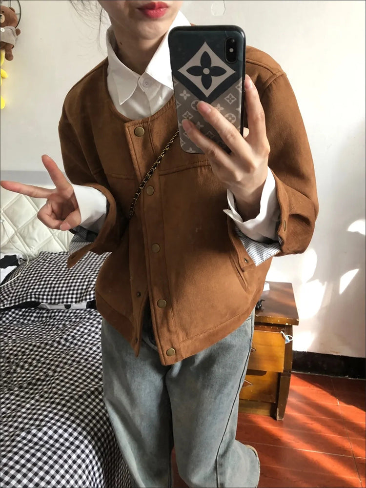 Bomber Vintage BrushStore: Eleganza retrò per le Tue Giornate Autunnali 🍂✨ Questo bomber in ecopelle scamosciata è l'aggiunta perfetta per un look casual e raffinato. Il suo design o-collo e lo stile slim-fit coreano donano un'eleganza unica che si adatta perfettamente alle tendenze autunnali. Realizzato con materiali di alta qualità, questo bomber unisce comfort e stile, rendendolo ideale per chi ama la moda vintage con un tocco moderno. 🧥🌟
